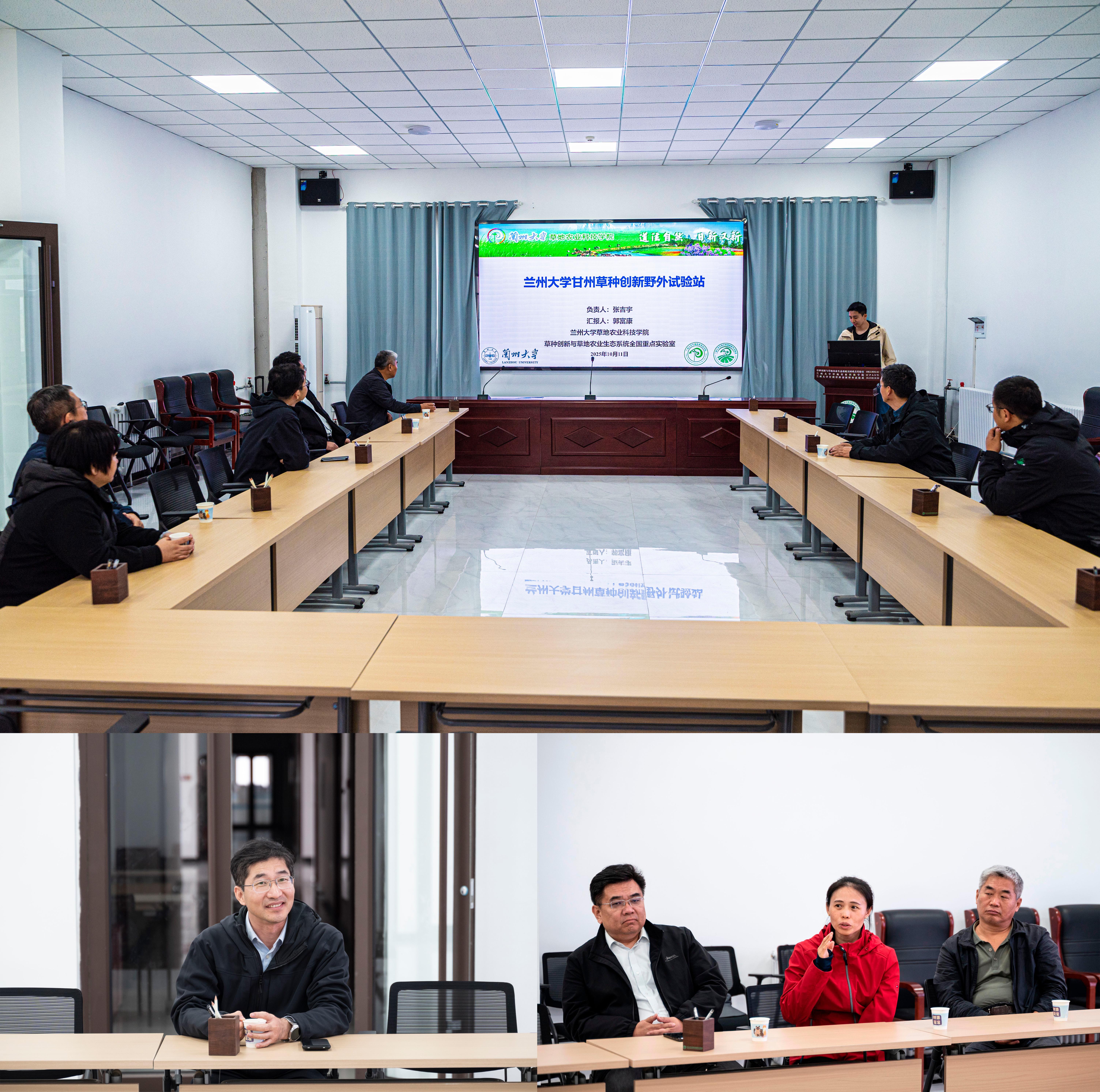 随后的座谈中,郭富康博士通过PPT详细汇报了甘州站的发展历程、应用平台建设情况,并重点展示了近年来在草种资源创新与生态修复方面的科研进展与代表性成果。期间,郄光发主任就野外台站的建设、草种选育与生产问题与张吉宇教授展开深入交流,双方围绕提高草种研发具体交换意见。林科院一行对甘州站系统化的运行机制与显著的建设成效给予高度评价,一致认为其成功经验为相关领域科研平台的建设提供了宝贵范本,并期待双方进一步加强合作、共同推动相关领域发展。